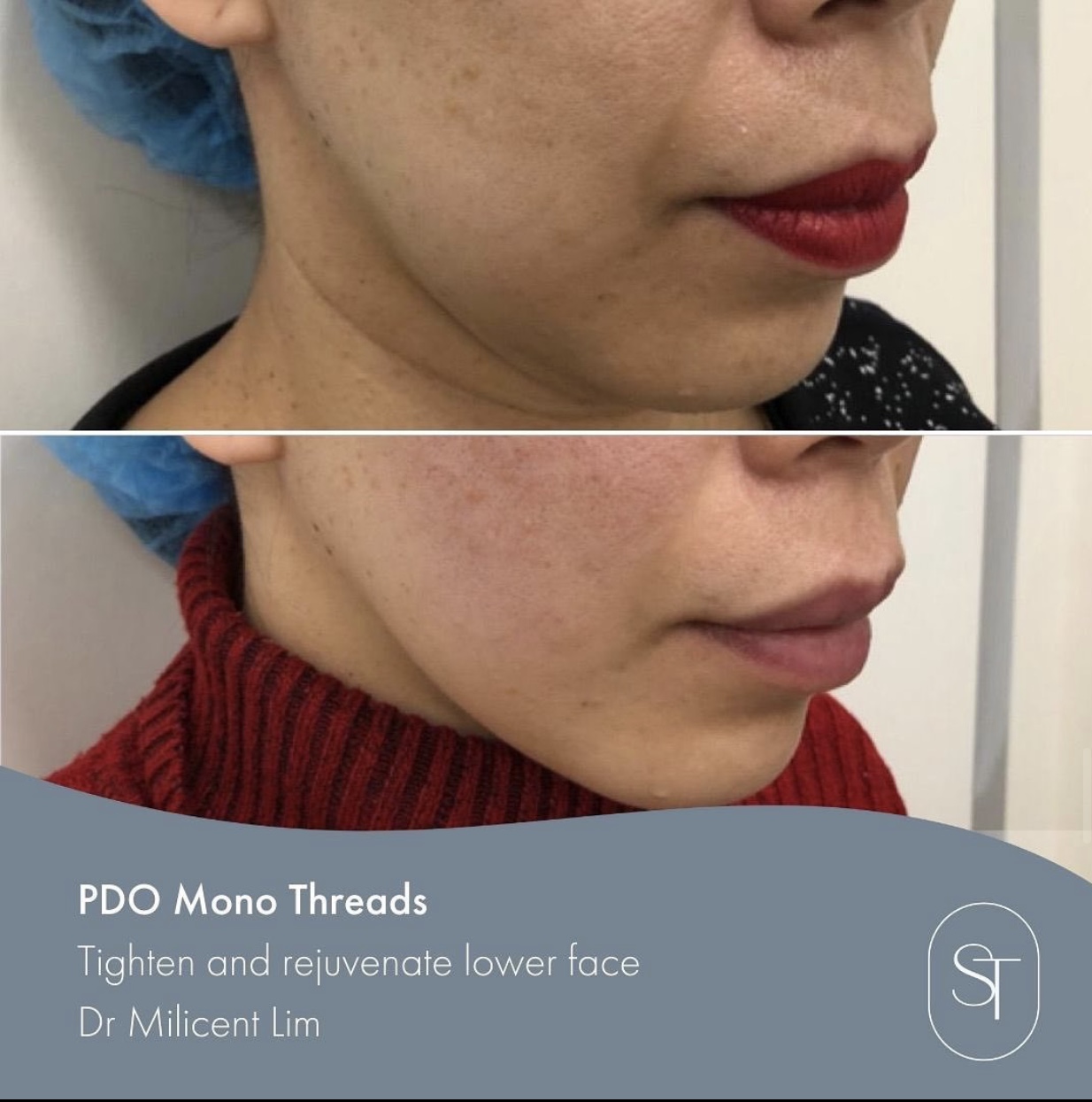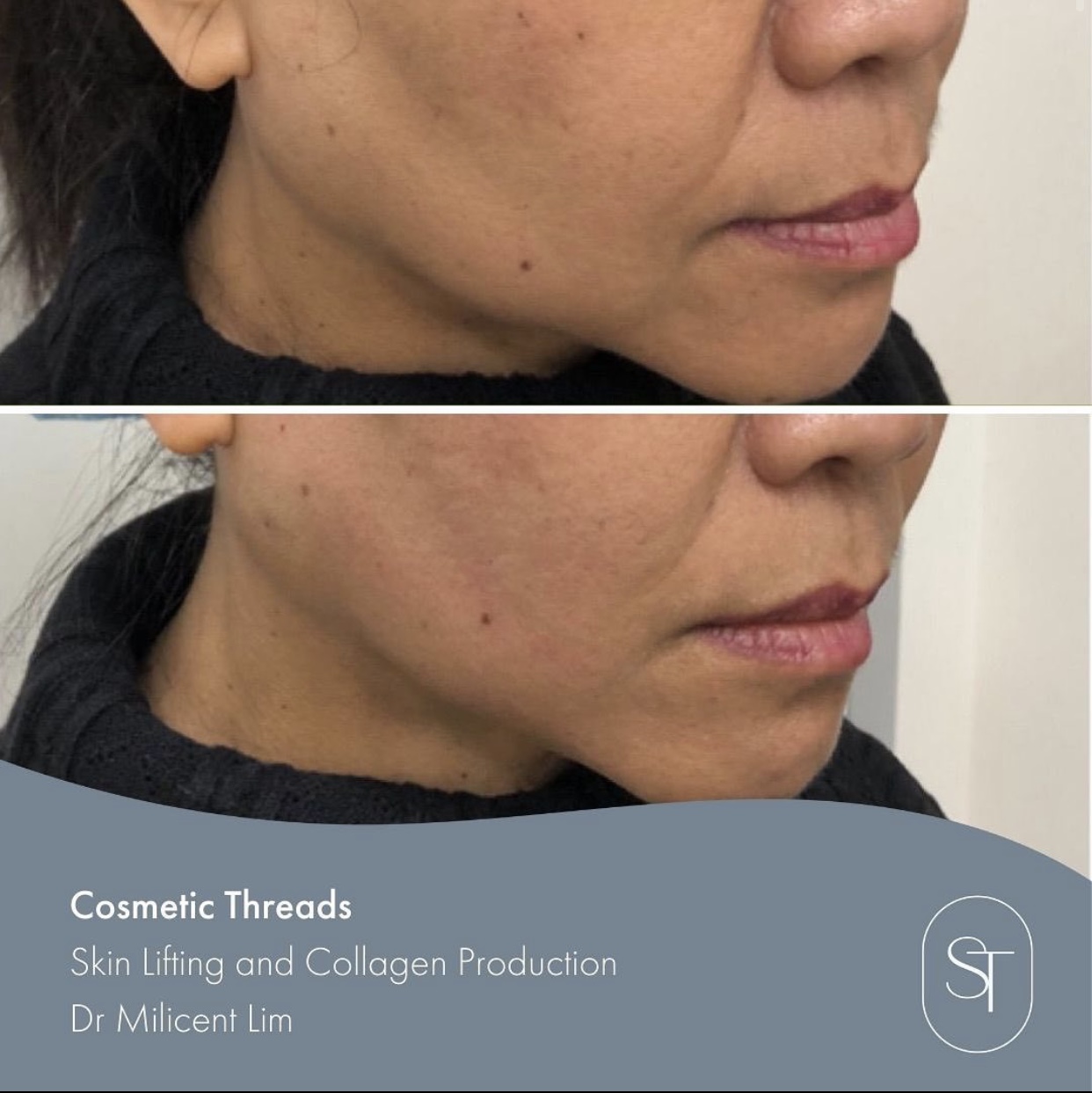 Thread face lift treatment or long threads on the other hand can lift sagging skin on your face and neck by introducing soft suture threads into the skin tissue to hold it in place and achieve the desired lift effect. Your body will also start to generate new bundles of collagen surrounding the threads, producing firmer and younger looking skin. As this is a mechanical pull, results can be seen immediately and will continue to improve as the threads dissolve.